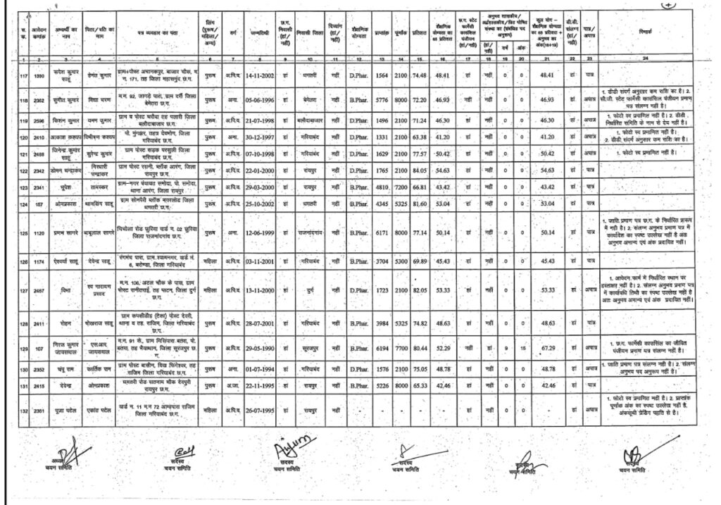 मेरिट सूची को लेकर भी गंभीर अनियमितताओं के आरोप लगाए गए हैं। फार्मासिस्ट पद पर मात्र 36 प्रतिशत अंक वाले अभ्यर्थी को मेरिट सूची में दूसरा स्थान दे दिया गया, जबकि उससे अधिक अंक प्राप्त करने वालों को सूची से बाहर कर दिया गया। इसी तरह सीएचओ पद पर अनुसूचित जनजाति वर्ग में 52 अंक पाने वाले अभ्यर्थी को बाहर कर दिया गया और 49 प्रतिशत अंक वाले को मेरिट में रखा गया। एमपीडब्ल्यू और स्टाफ नर्स जैसे पदों पर भी कम अंक वालों को आगे और अधिक अंक वालों को पीछे कर देने के कई उदाहरण सामने आए हैं।