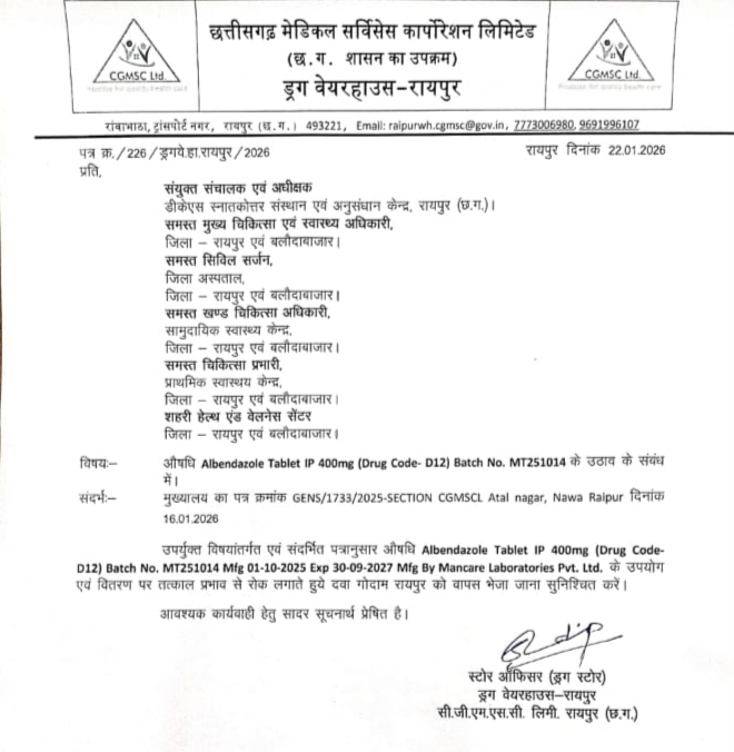 ताजा मामला बच्चों को क्रीमी से बचने के लिए दी जाने वाली एल्बेंडाजोल के अमानक टैबलेट का है। जिसका उपयोग रायपुर, बलौदाबाजार के जिला अस्पताल व स्वास्थ्य केंद्रों में किया जा रहा था। जिस पर एक बार फिर रोक लगानी पड़ी। ऐसे में सवाल उठता है कि अगर दवा घटिया थी तो खरीदी कैसे हुई? सप्लाई कैसे हुई? और इस्तेमाल कैसे शुरू हुआ? अब इसका जवाब अब मंत्री जी देंगे या फिर हमेशा की तरह कार्रवाई जारी है” कहकर ठंडे बस्ते में मामले को डाल दिया जाएगा?